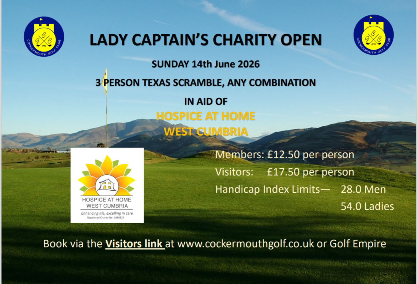You can sign up to be a part of a three-person Texas scramble, in any combination, at Cockermouth Golf Club on Sunday the 14th of June.